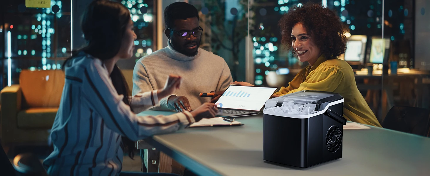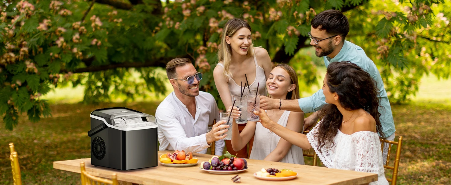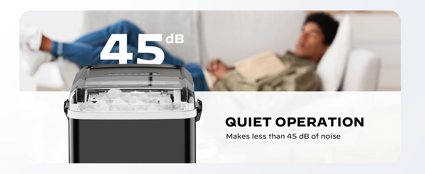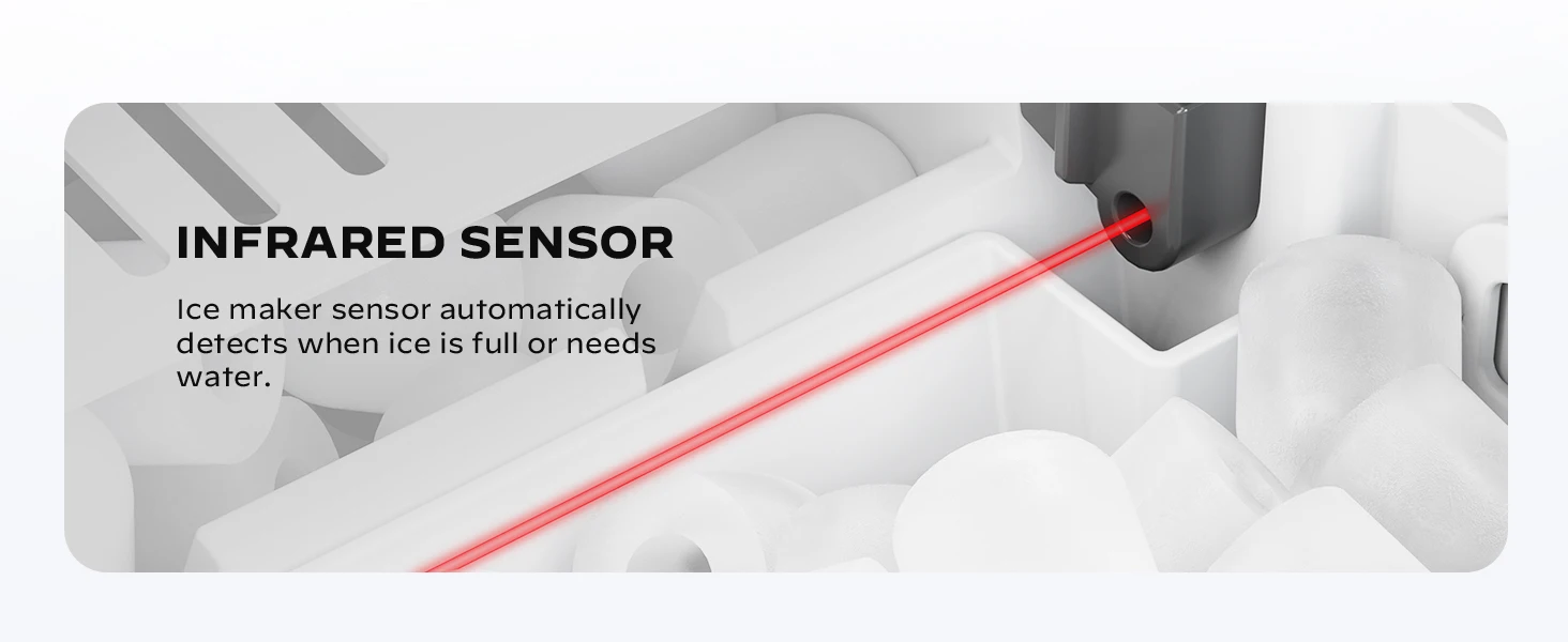 - ➤Smart & Simple Operation: The indicator on the countertop ice machine alerts you when the basket is full and reminds you when to add water if the ice machine is running low. Choose from two sizes of ice for flexibility when making cocktails or refreshing drinks.