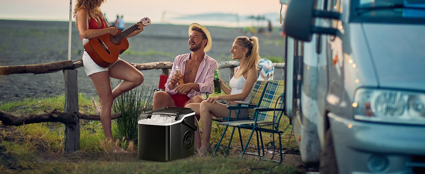 - ➤Compact & Portable: This portable ice maker measures only 11.93″ x 9.8″ x 11.1″ in size and weighs 13 lbs. The ice maker is designed with a flip-up handle so you can easily take it to holiday parties, work events, or even in your RV to enjoy fresh ice wherever you go.